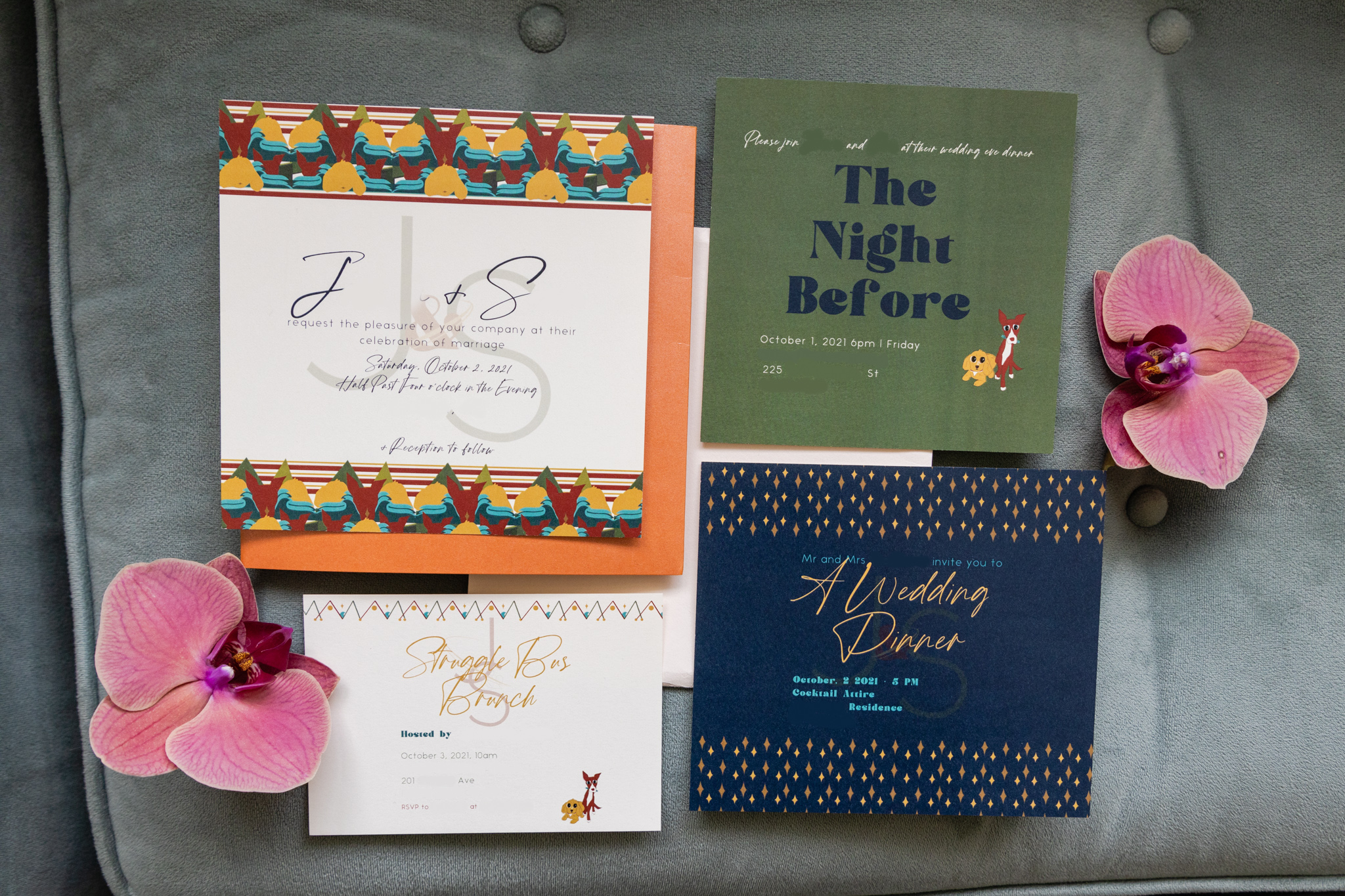 Not all couples have the capacity for a wild creation from my universe, but I still want to hold space for them. If couples could go through the same questionnaire and interview experience as full-service clients, I can provide them with a digital library of assets instead of a finished suite, that they can use to create their own finished pieces.