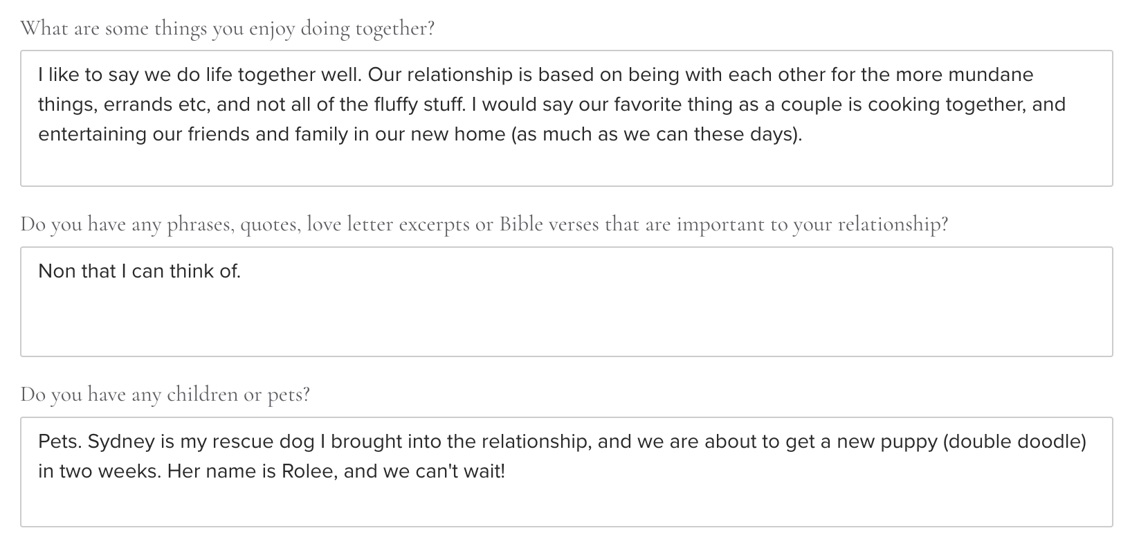 As I see in most of my couples, these two had a varied array of interests. These two held a couple things close to their heart: their home, their dogs, and their love for clean, but fun, design.