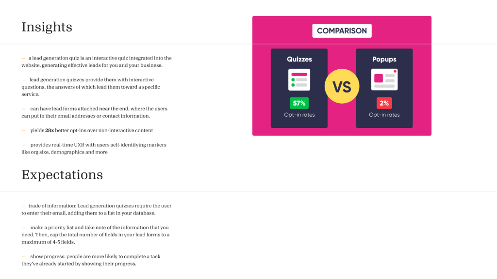 I initiated discovery that showed a guided quiz would increase interaction and engagement.
