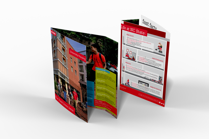 As the principal designer for Academic and Student Affairs, I conceptualized and created materials for 50+ departments at the University. At the forefront of responsibilities was safeguarding the NC State brand across the division as we managed communication for Campus Health, University Housing, the Career Center and more.
