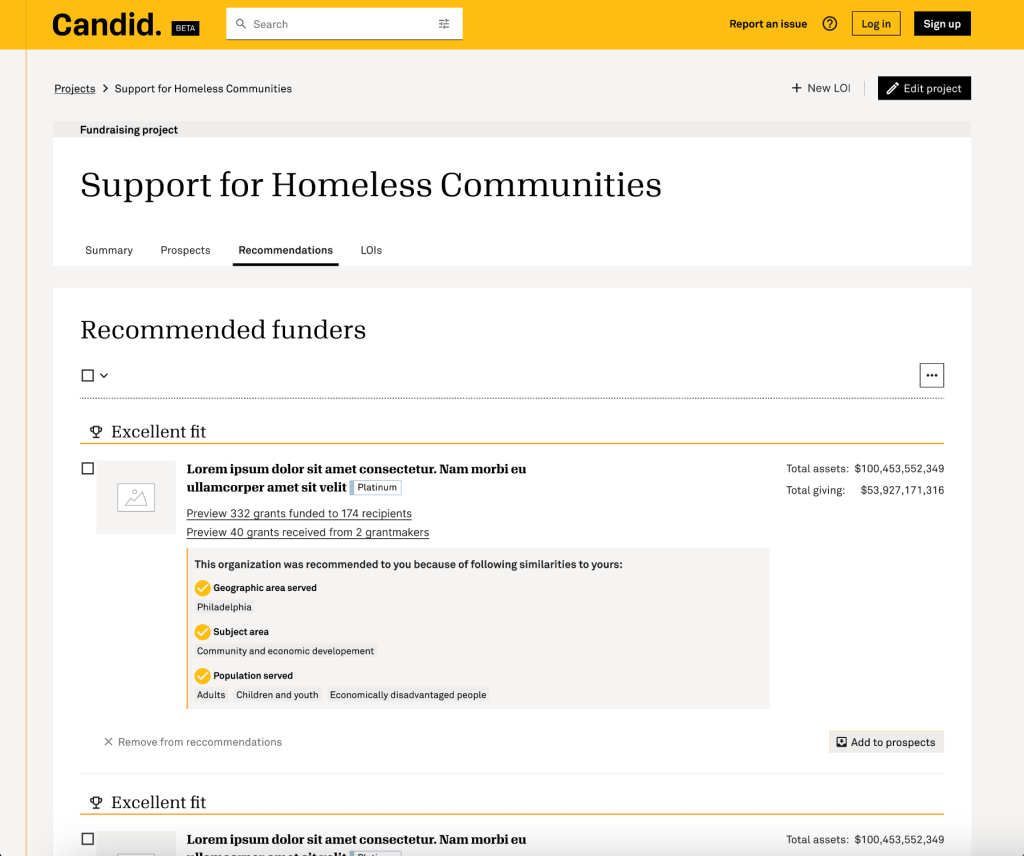 - Core feature of search experience designed for desktop and responsive, now live at app.candid.org